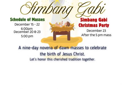 Tuesday – 9:00 am Church / Eucharistic Adoration after mass till 1 pm